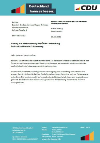 Antrag zur Verbesserung der ÖPNV-Anbindung im Stadtteil Bendorf-Stromberg