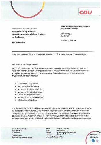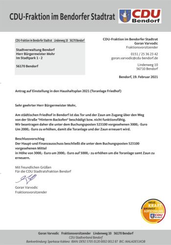 Antrag der CDU Stadtratsfraktion – Toranlage auf dem Friedhof in Bendorf