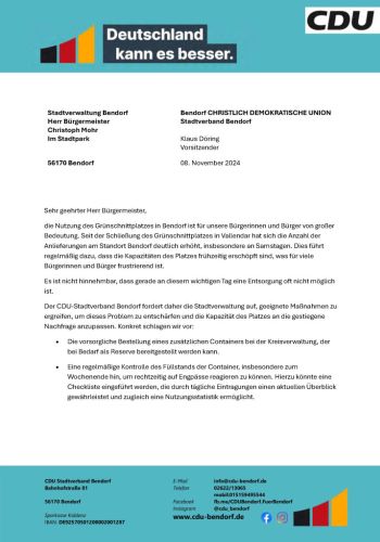 CDU-Arbeitskreis Stromberg beantragt Grünschnittplatz für Bendorf-Stromberg