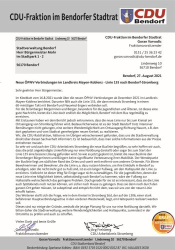 Neue ÖPNV-Verbindungen im Landkreis - Linie 155 nach Bendorf-Stromberg