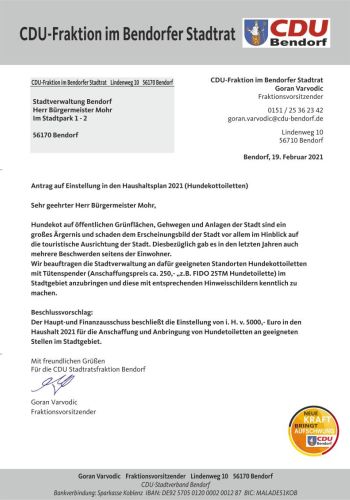 Antrag der CDU Stadtratsfraktion – Hundekottoiletten im Stadtgebiet