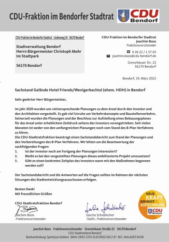 Sachstand Gelände Hotel Friends/Wenigerbachtal (ehem. HDH) in Bendorf