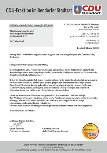 Antrag wegen der Ampelanlage an der Kreuzung Hauptstraße/Steinstraße/Kirchplatz